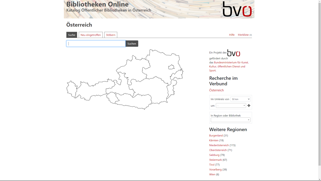 Über die Büchereiordnungszahl (BOZ) wird eine Suchformular zu dem Bestand ihrer Bibliothek auf bibliotheken.at bereitgestellt.